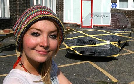 Buscando he encontrado una noticia del año 2009 que me ha impresionado bastante. Una estudiante de arte Sara Watson ha encontrado la mejor manera de evitar a los guardias de tráfico al hacer su coche invisible. Ha pintado con spray un Skoda Fabia abollado que coincide con el aparcamiento y la entrada de su estudio de arte. Su obra, creada como parte de su curso de dibujo, crea la ilusión de que el coche es invisible. Trabajó durante tres semanas para asegurar que se mezcla perfectamente con su entorno.