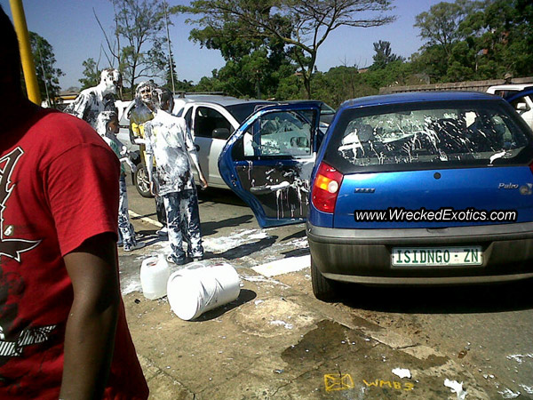 El accidente ocurrió en Sudafrica. Los pobres se quedaron blancos y no precisamente del susto.